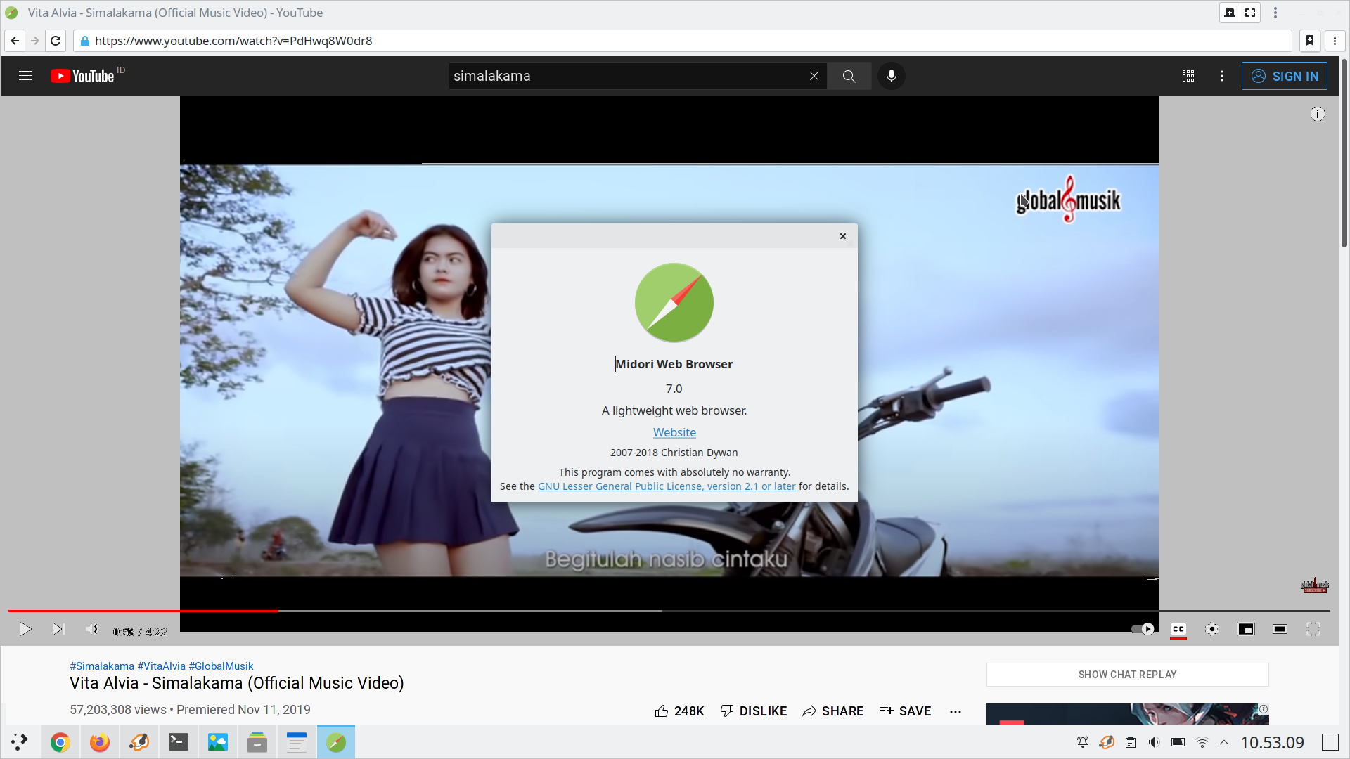 Midori was originally a part of Xfce desktop component. It is small, looks good and works with modern website like YouTube.
